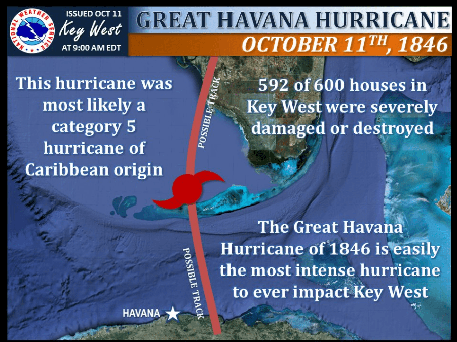 This must have been an idyllic time for the young family, but on October 11th, 1846 their lives would be turned upside down. The “Great Havana Hurricane” arrived in Key West that morning after already severely damaging Havana, Cuba.