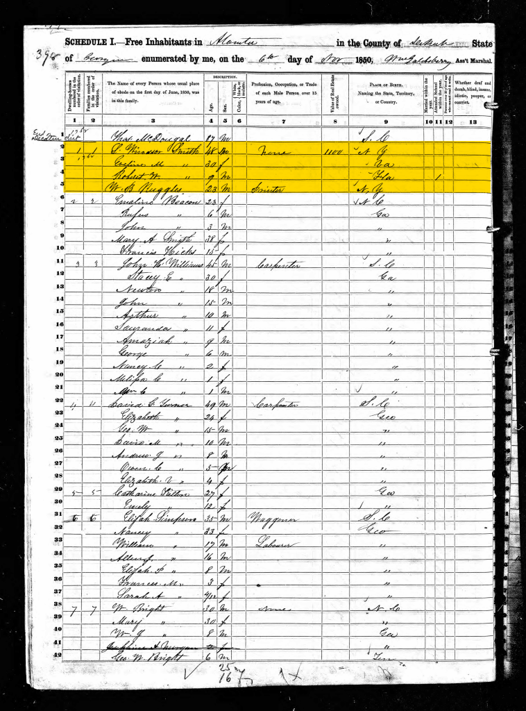 This Whitehall storefront would play an important role in reconstruction era Atlanta retail history, but that’s a story for another day. Up next we will look at more family changes in the Smith household in the days leading up to the Civil War.