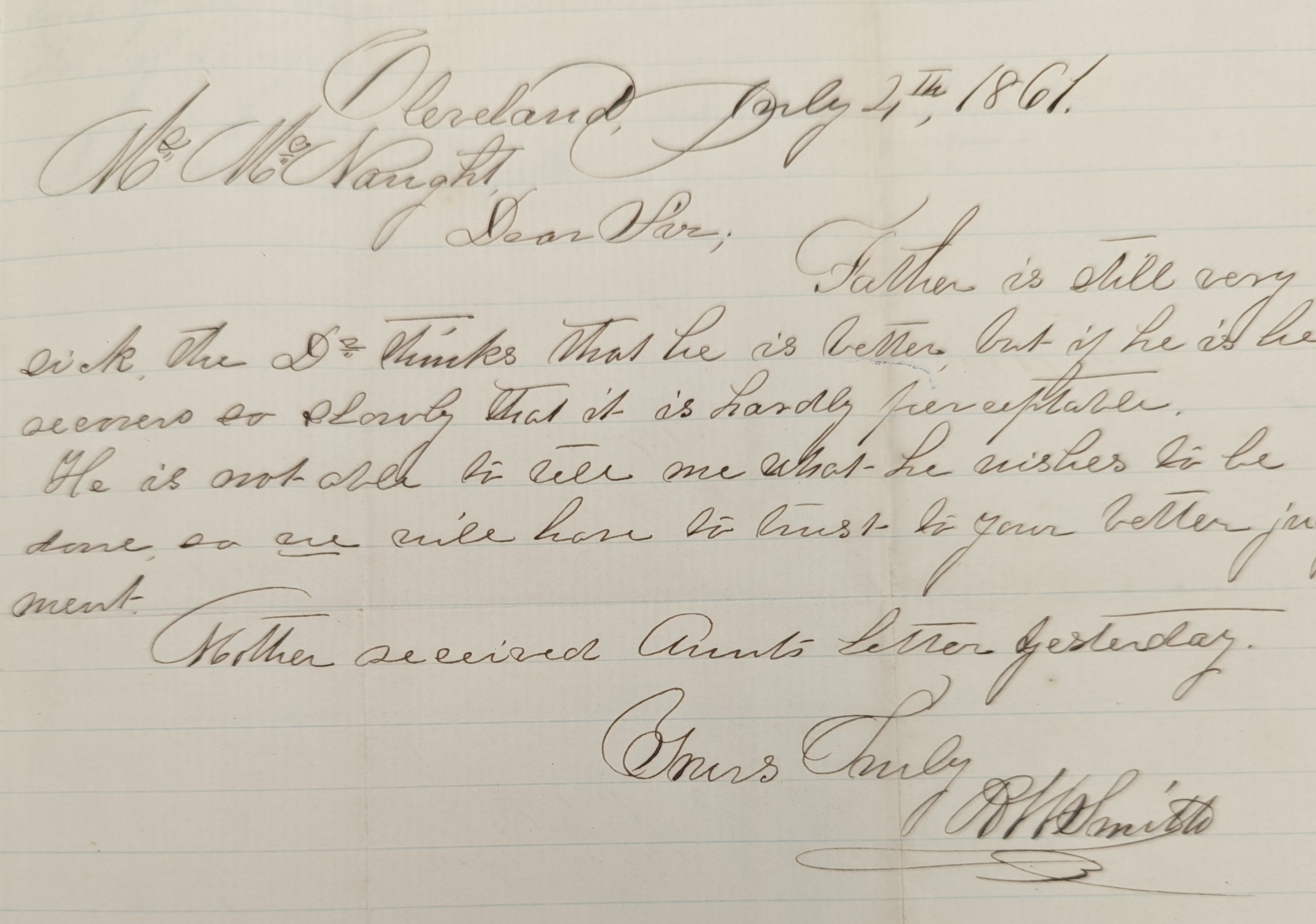 Mother received Aunt’s letter yesterday.